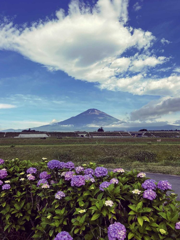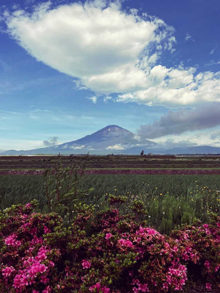色んなお花と表情変えて見える富士山🗻白い雲ととても素敵ですね🩷