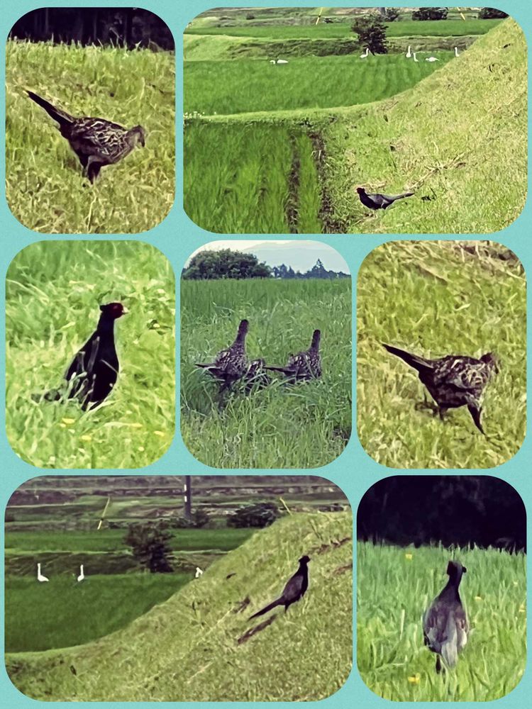 キジもつがいでしょうか 雌が出てくるの珍しいですね それに たくさんの白鷺ですか?田んぼの虫はいなくなりそうですね💦😅