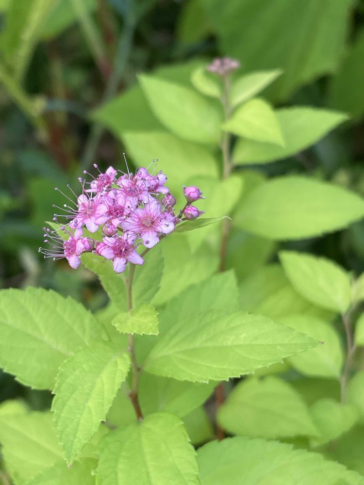 ⑤まだ小さなシモツケ、初めてお花を付けました(*´﹀`*)✨