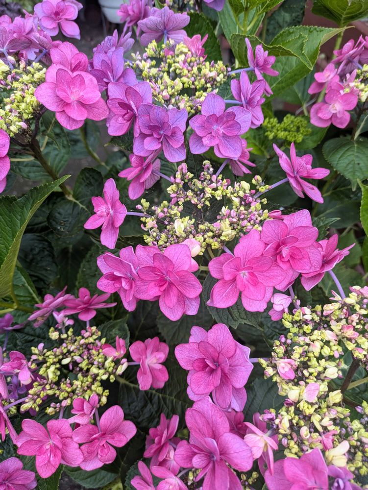 頑張っている赤色紫陽花小町