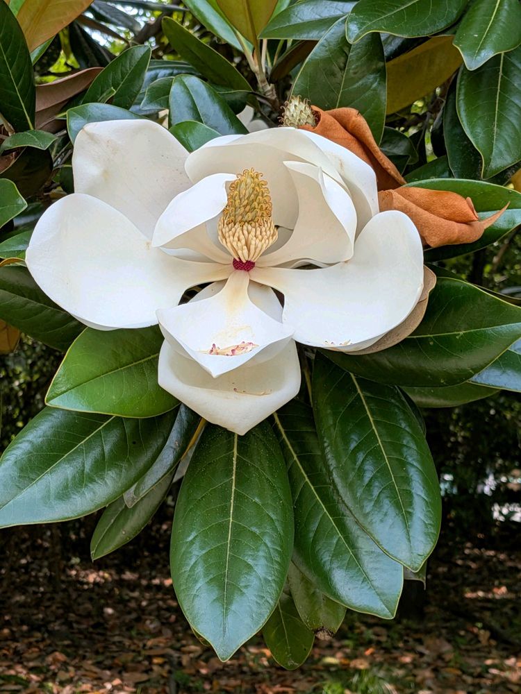 大きな白い花。花の命は短く、2日後には花びらが茶色に変色し、さらに2日後には全ての花びらが散ってしまいます。