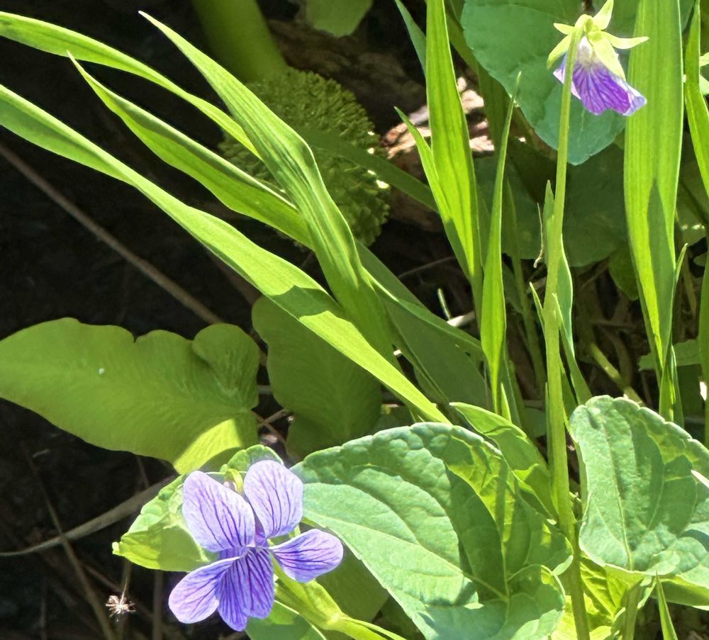 スミレ種の中ではいちばん大きなスミレということらしいですが、茎が真っ直ぐ立ち上がったところに目立つ花をつけるので、大きいことと相まってとても見応えのあるスミレです💕