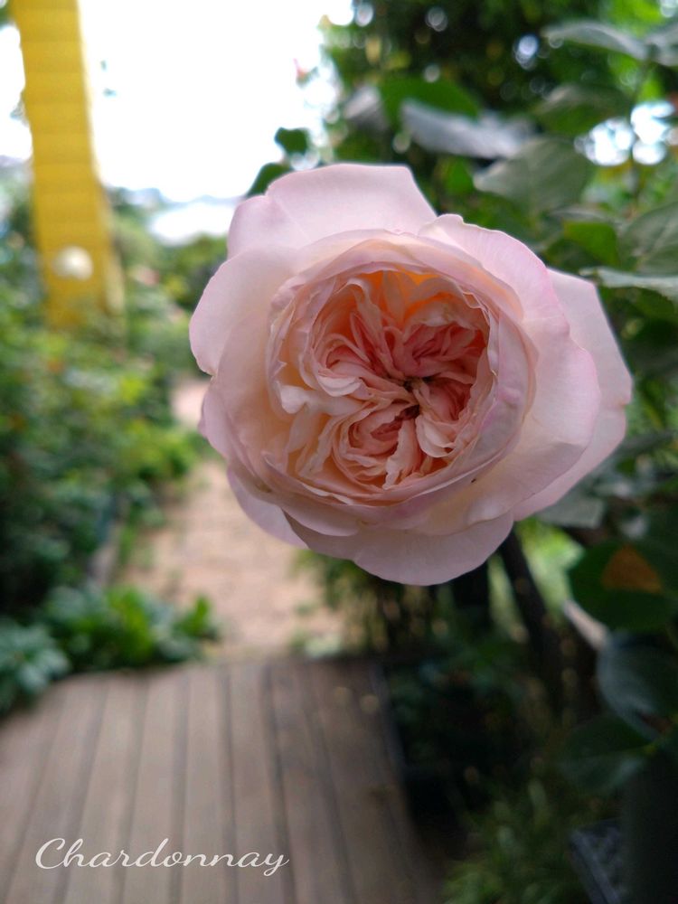 ①シャルドネ🌹やっぱりこの子は炎天下や雨ざらしは嫌いみたい💦 テラス内で可愛い❤