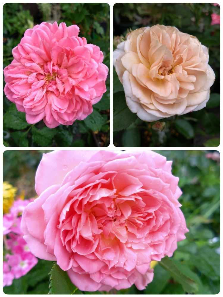 ⑤挿し木から初開花の子🌹パニエ、プリンセスアレキサンドラオブケントは名札ありだからわかるけど、下のは?なんだかジュビリーっぽい……だといいな😊💕
