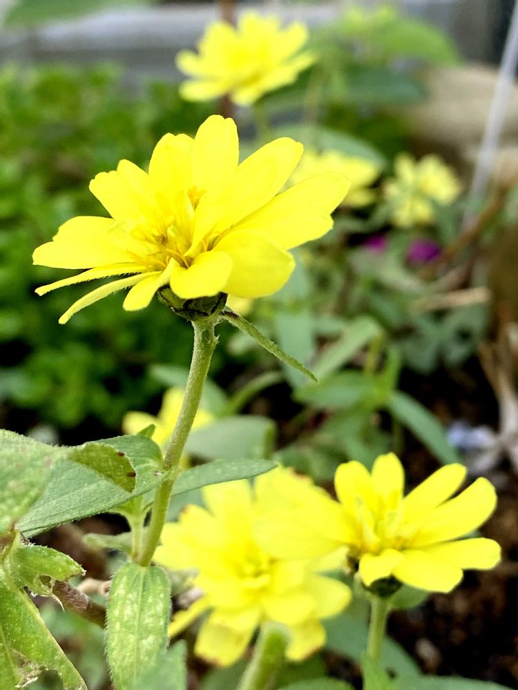 黄色💛は元気いっぱい〰️咲いています🌼ピンク色🩷は小さな蕾がついていますが…咲いてくれるかな?🌿🌸🌿
