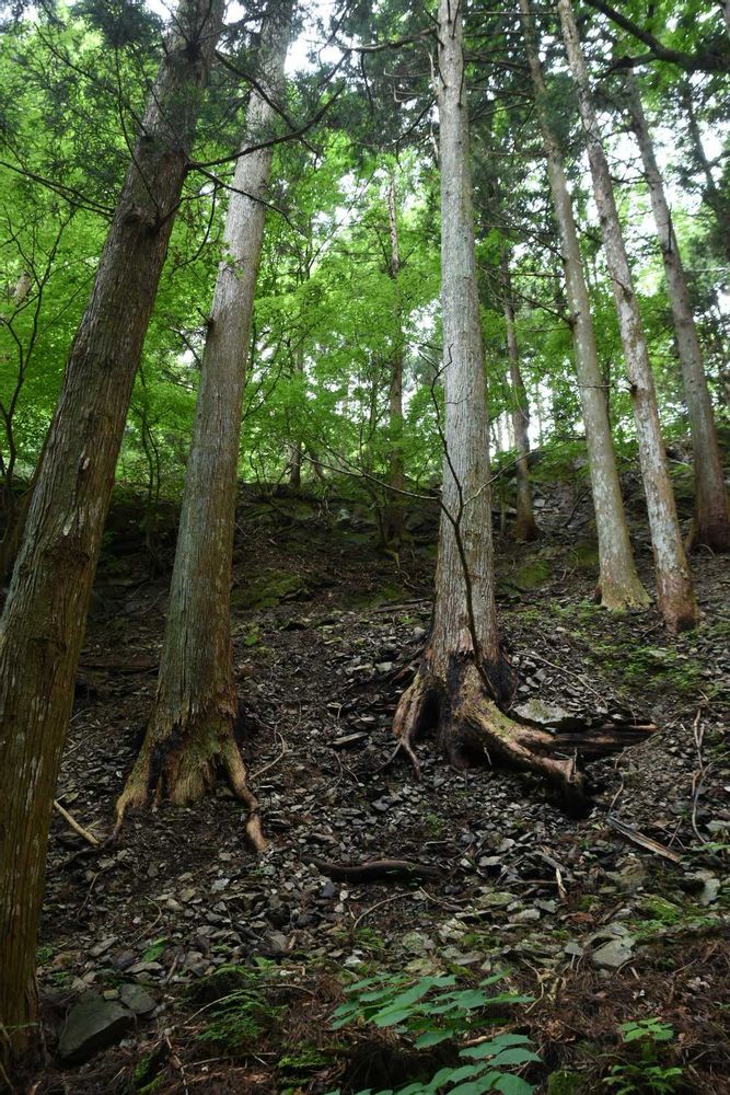 杉の中には、先の山火事で根元が焼けたものも。