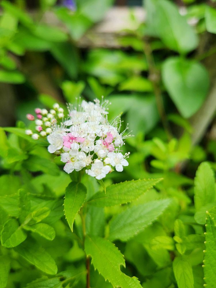 ゲンペイシモツケなんですね!小学校の植え込みのシモツケが白にピンクが混ざってかわいいこの花です シモツケ→ゲンペイシモツケに写真の名前を変更しました♪