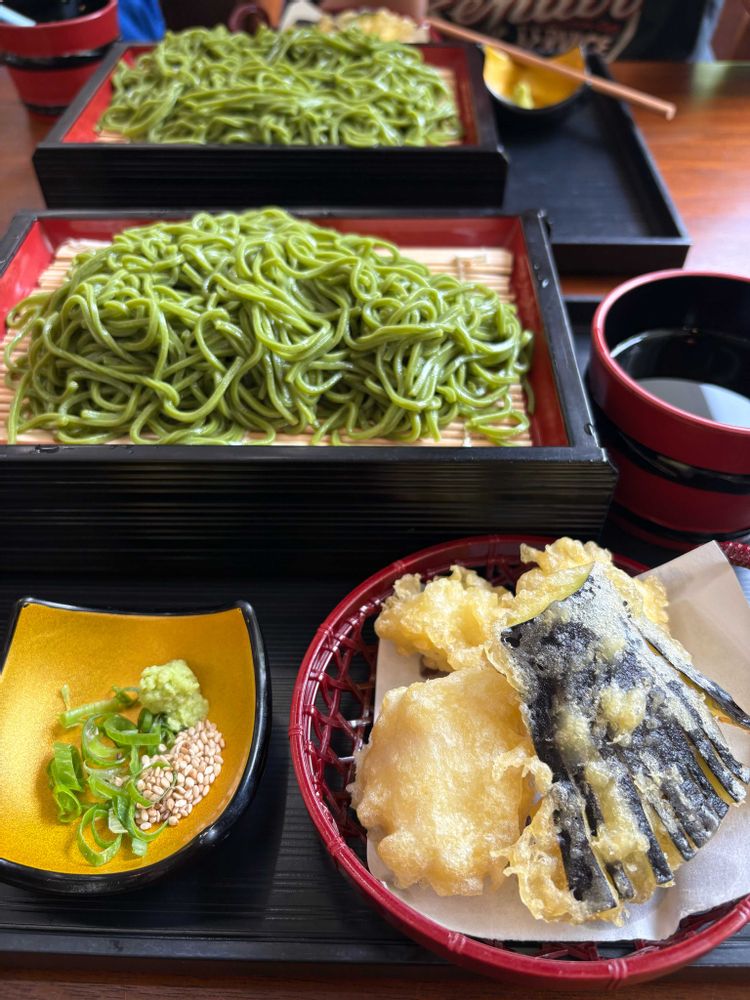 お昼ご飯は、「季節のランチ」をオーダー。地元産の揚げたてのハモの天ぷらと茶そばが出てきて、これも美味しくいただきました😋✌️〜🍀🍀🍀