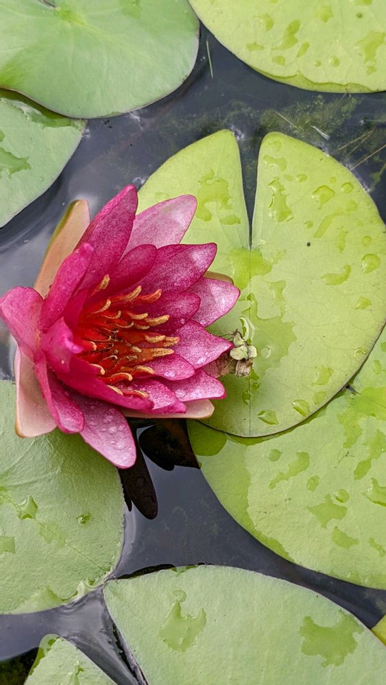濃い赤のスイレン珍しいですね