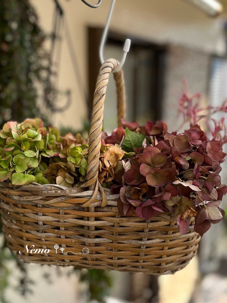 先日カットした紫陽花の花でリースを作りました、3種類とカンガルーポウ、もっと早く作れば良かった、忘れてたらカリカリ何とか形に出来ました💕