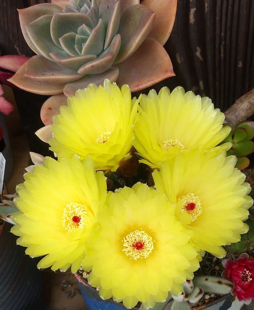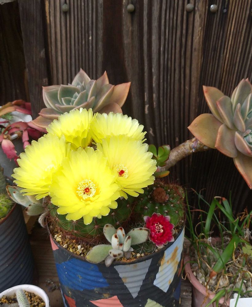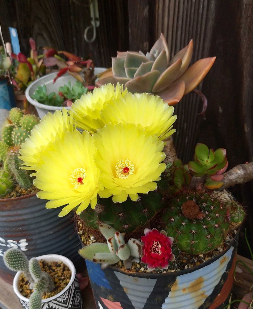 天気予報では☁だったので、サボテンの花は開かないかなと諦めていたのですが、陽が差し出す時もあり、見事に👏檸檬イエローの花が開きました💕