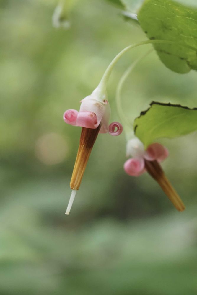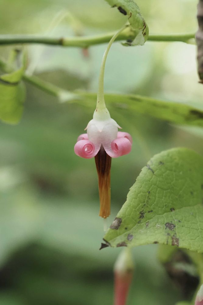 アクシバ(灰汁柴)ツツジ科スノキ属の落葉低木。『花冠は淡紅紫色で、つぼみ状態で長さ1 cmの披針形になり、開花時に花冠裂片が基部近くまで深く4裂し、先が外側にくるくると巻き込む』(wiki)。とにかく、小っちゃい、可愛い💕。好きですネ〜。