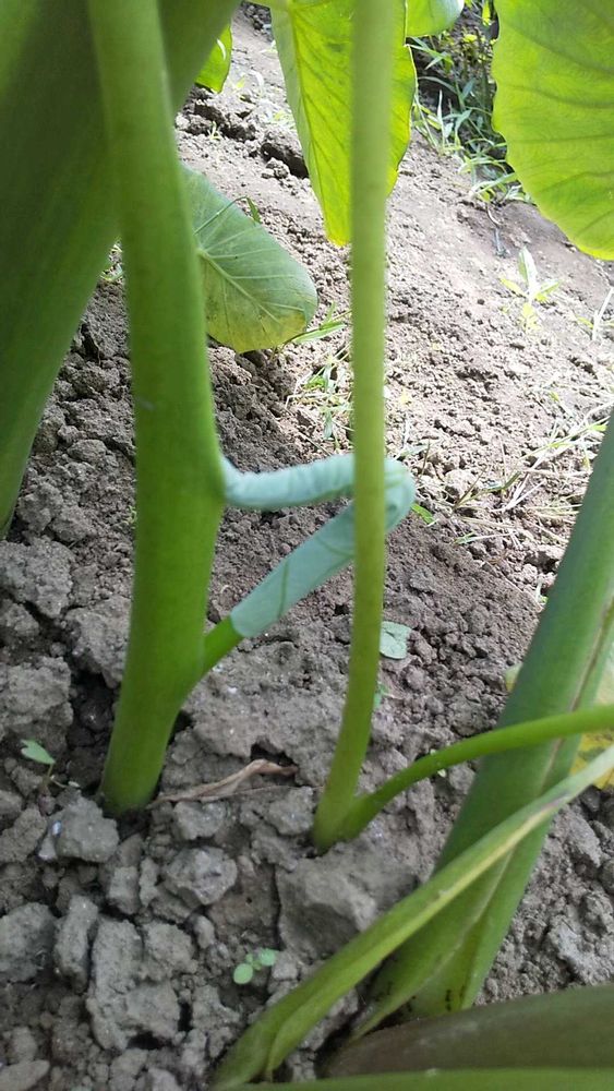 里芋の畝の草取りをしていると…