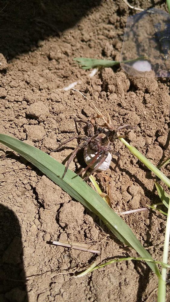 ④大変たいへんとおっきな卵を抱え逃げるお母さん蜘蛛