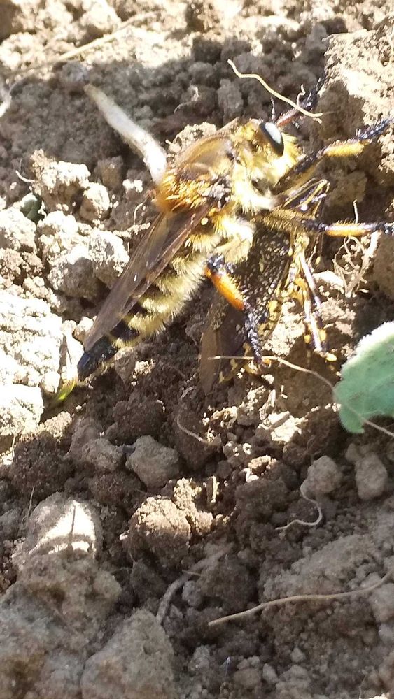 大きなカマメシゃないカメムシをしとめたシオヤアブ。