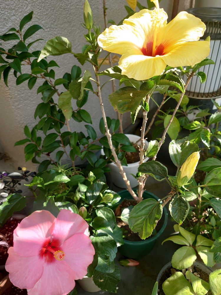 3️⃣4️⃣黄色いハイビスカスも一緒にさいて咲いてくれました💛🩷