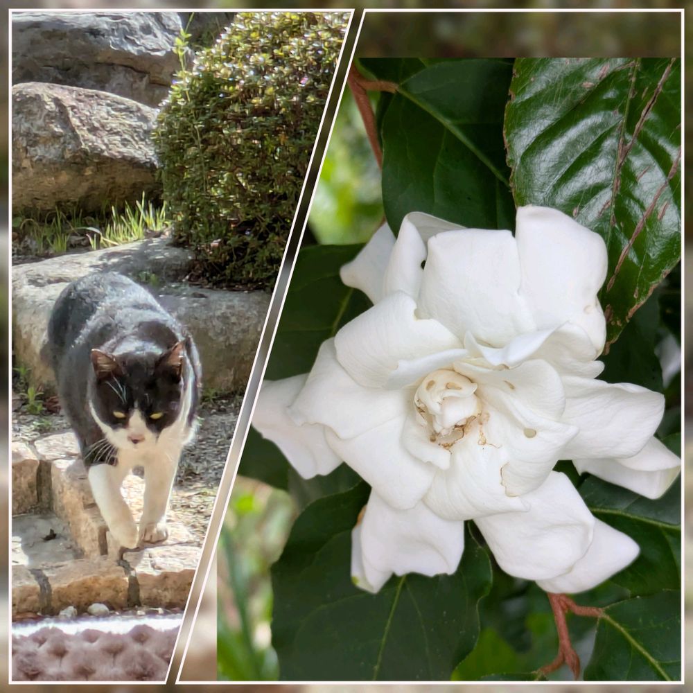それと、我が家の庭を、自分の庭のように歩く野良にゃん(首輪無いから、多分野良)をコラボしました。