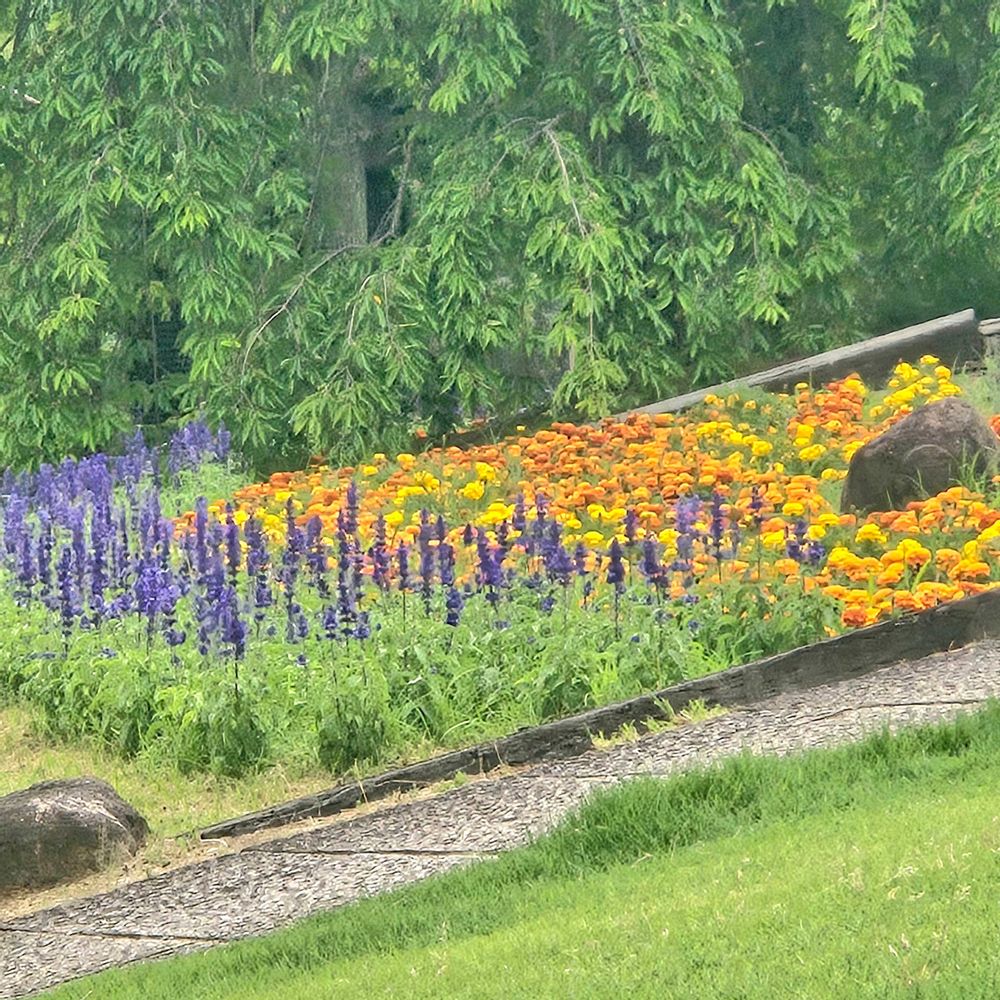 マリーゴールドとラベンダーが綺麗に咲いて...