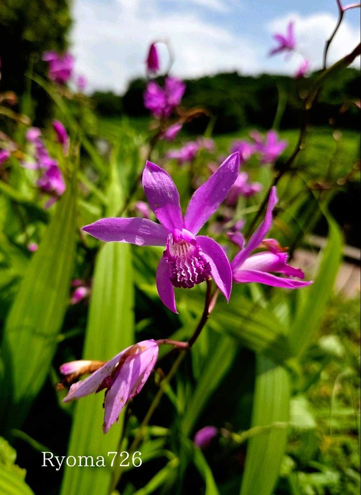 ①②③赤紫色のシランが咲いていました。