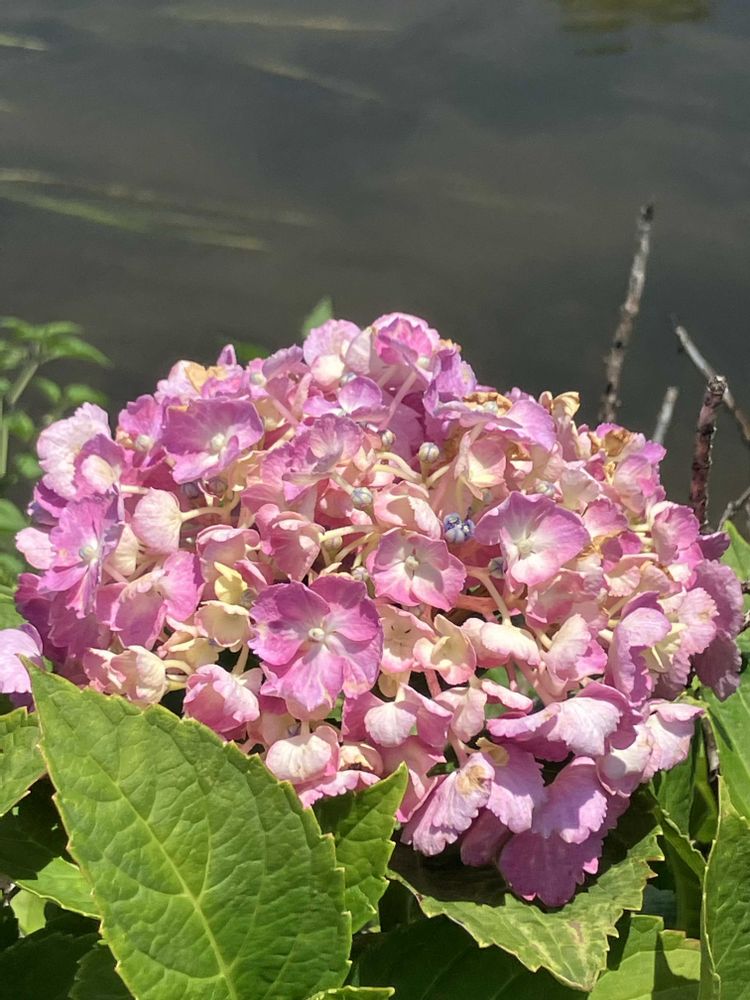 先ほどの用水路沿いにはアナベル以外の紫陽花も彩りを加えていました。