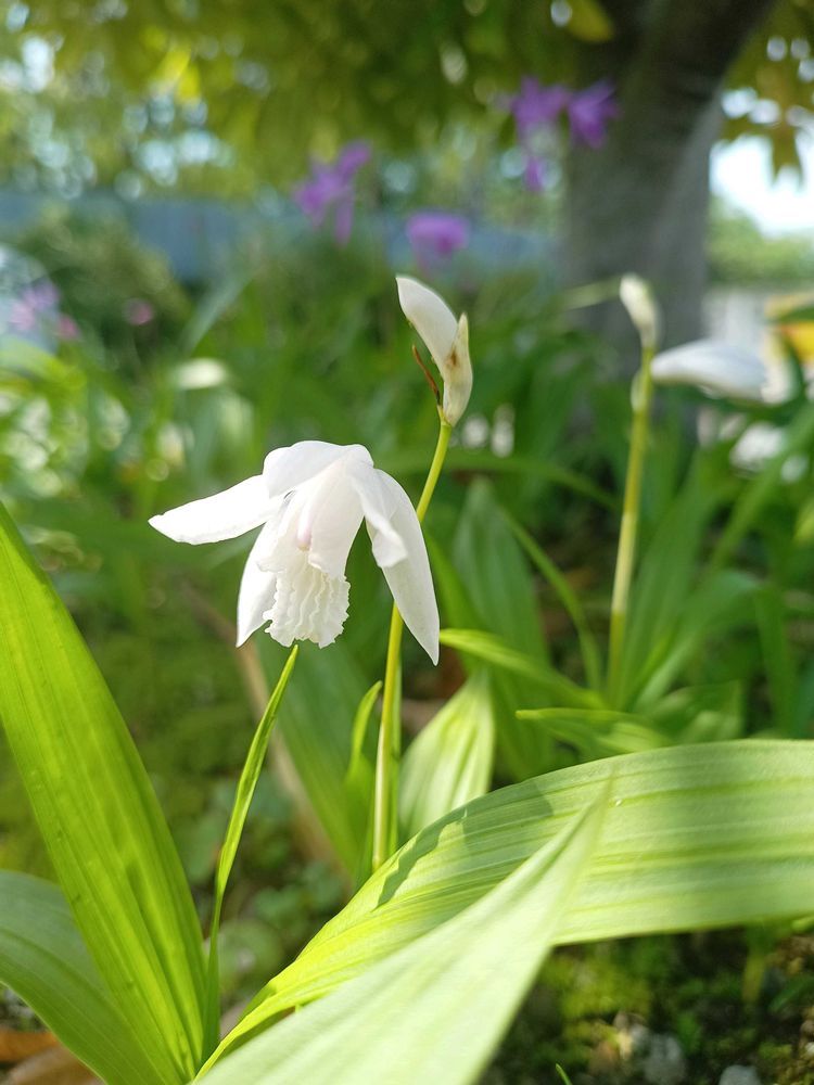 白のシラン🤍🌿はあまり見ないので、ここの花壇にお花を見に来るんです。