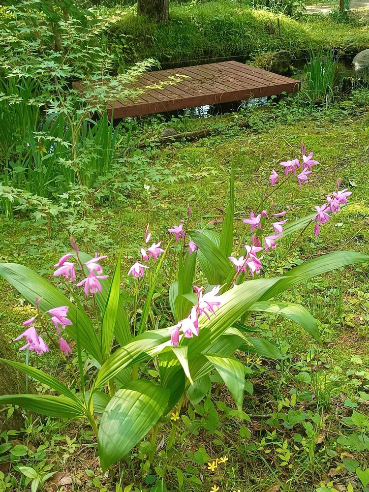 でも、5枚目の池のそばのシランが良い感じ〜シランもこんな場所で咲きたいに違い無い〜🤭✨