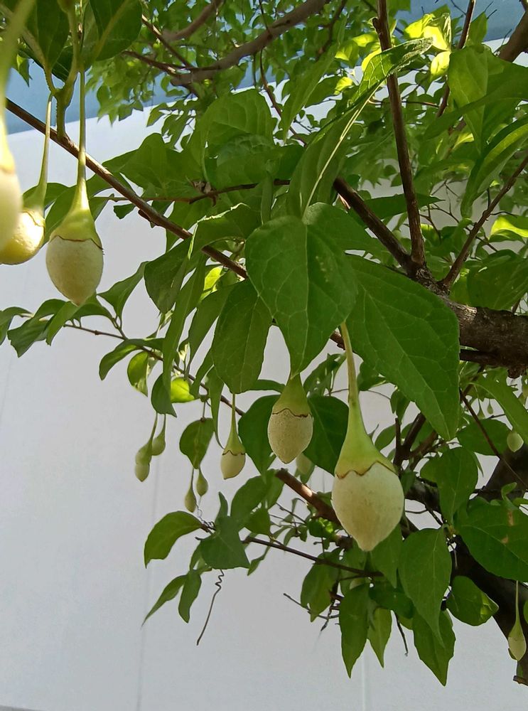 夏には灰白色の実を多数吊り下げます。