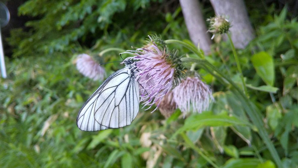 エゾシロチョウが吸蜜に訪れたエゾアザミかな(๑´∀`๑)