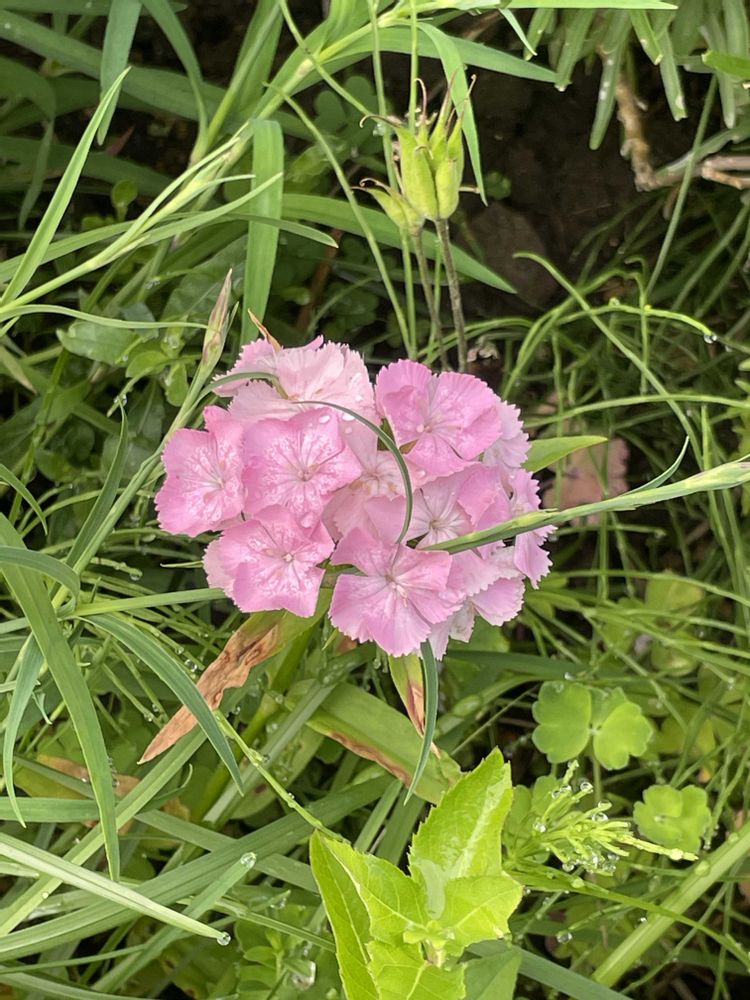 間から多分カワラナデシコかなぁ...赤いナデシコかなぁ...花芽が....