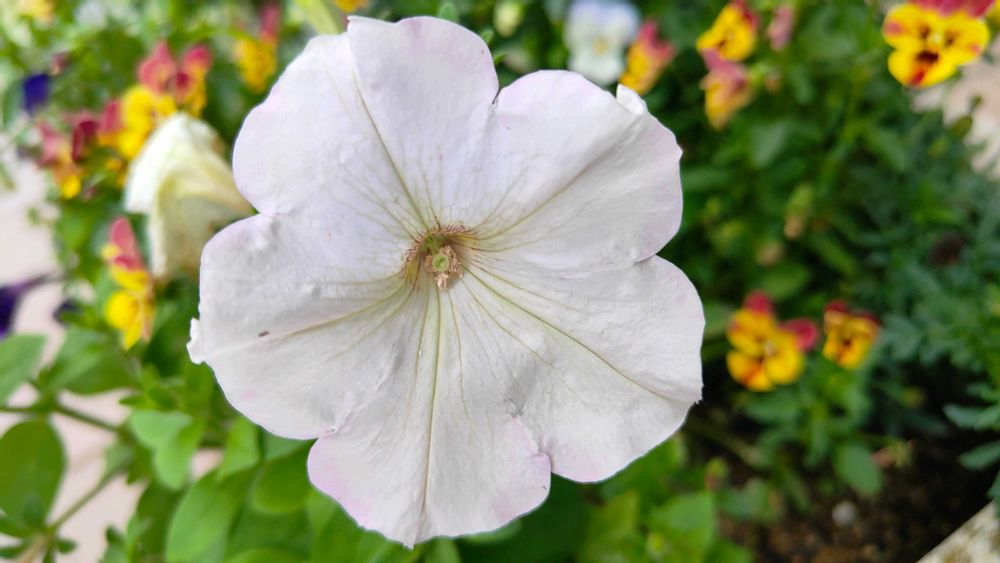 真っ白なペチュニアとピンクの