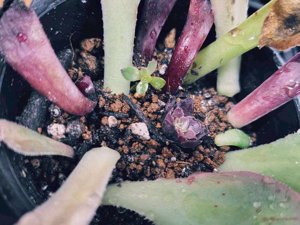 最近、その中で、元気な葉が存在しているのを発見。枯れ葉を捨てたら、根や芽の膨らみがある葉が、これだけあり。この時期はアエオニウムの葉挿しは、難しいと思いますが、窓辺で土の上に配置して試してみますね。