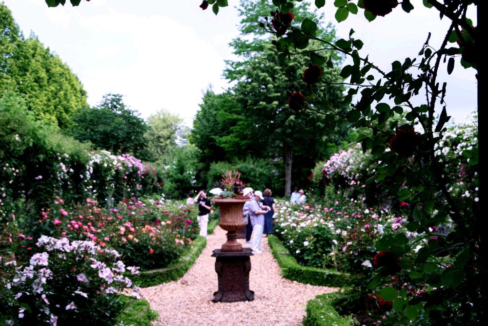 湖畔でたくさんの自然を楽しんだ後に、薔薇とクレマチスを互いに引き立てているフレンチ ローズガーデンが出迎えてくれます