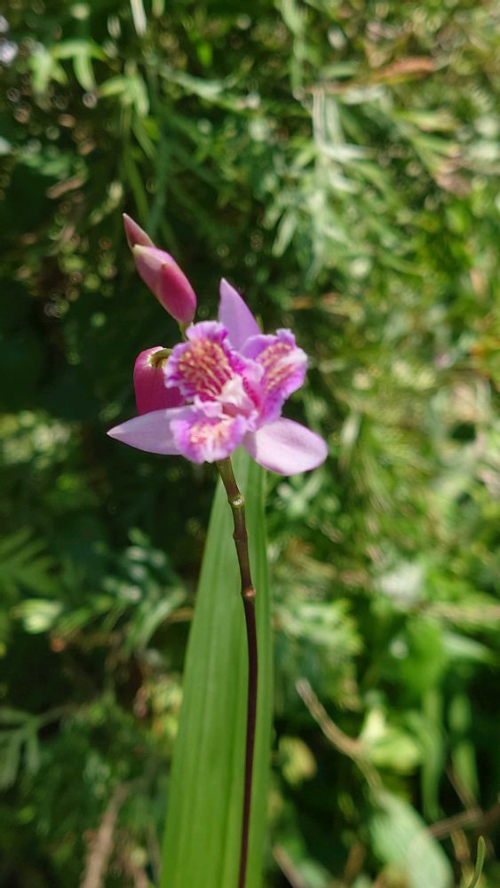 このシランは、先月の山野草展で見かけて連れ帰ったんです〜黄色がピンクにちょっと入って可愛いデス〜💗💛💕