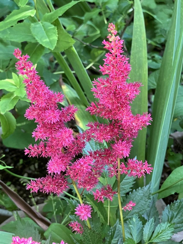 赤いアスチルベが、やっと咲いて来ました。 🤗