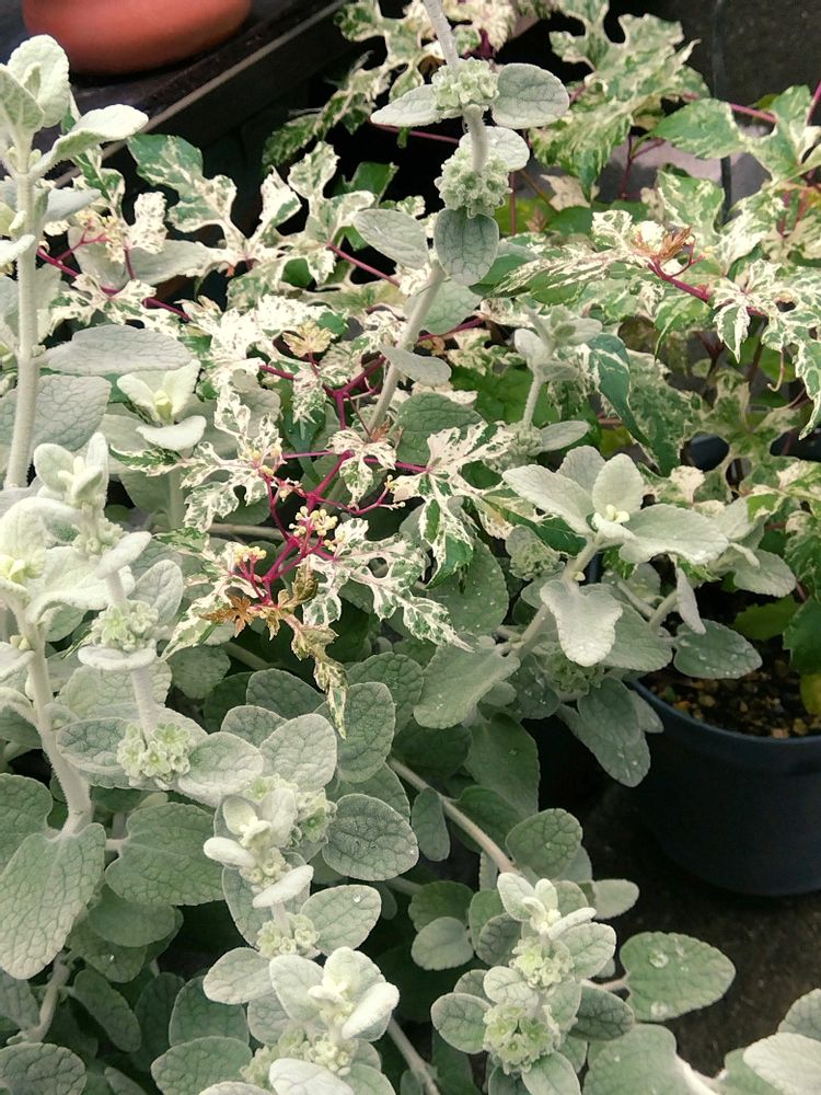 バロータ(シソ科)+ 斑入り野葡萄 (ブドウ科)です ♫
