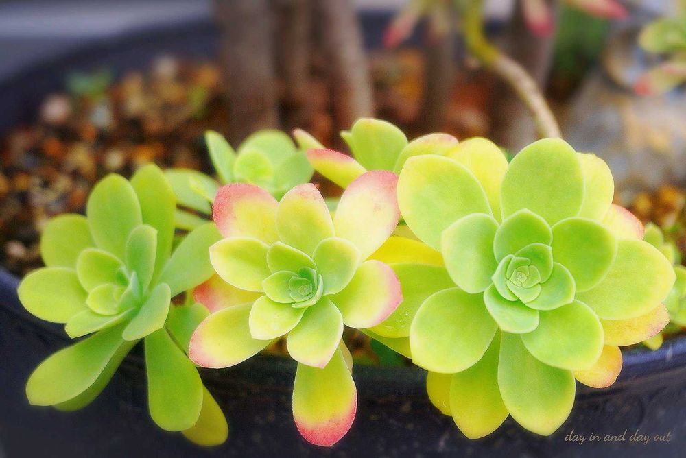 外葉が色付くと薄っすらお化粧しているみたいで可愛い多肉さんですෆ ̖́-
