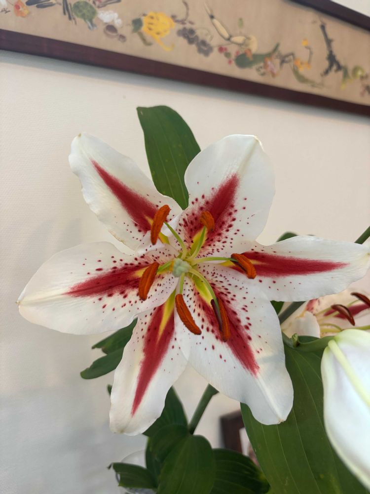 とっても華やかなユリですね。美しいです。見たことのない模様です。♥️🤍♥️🤍