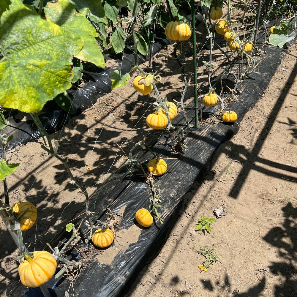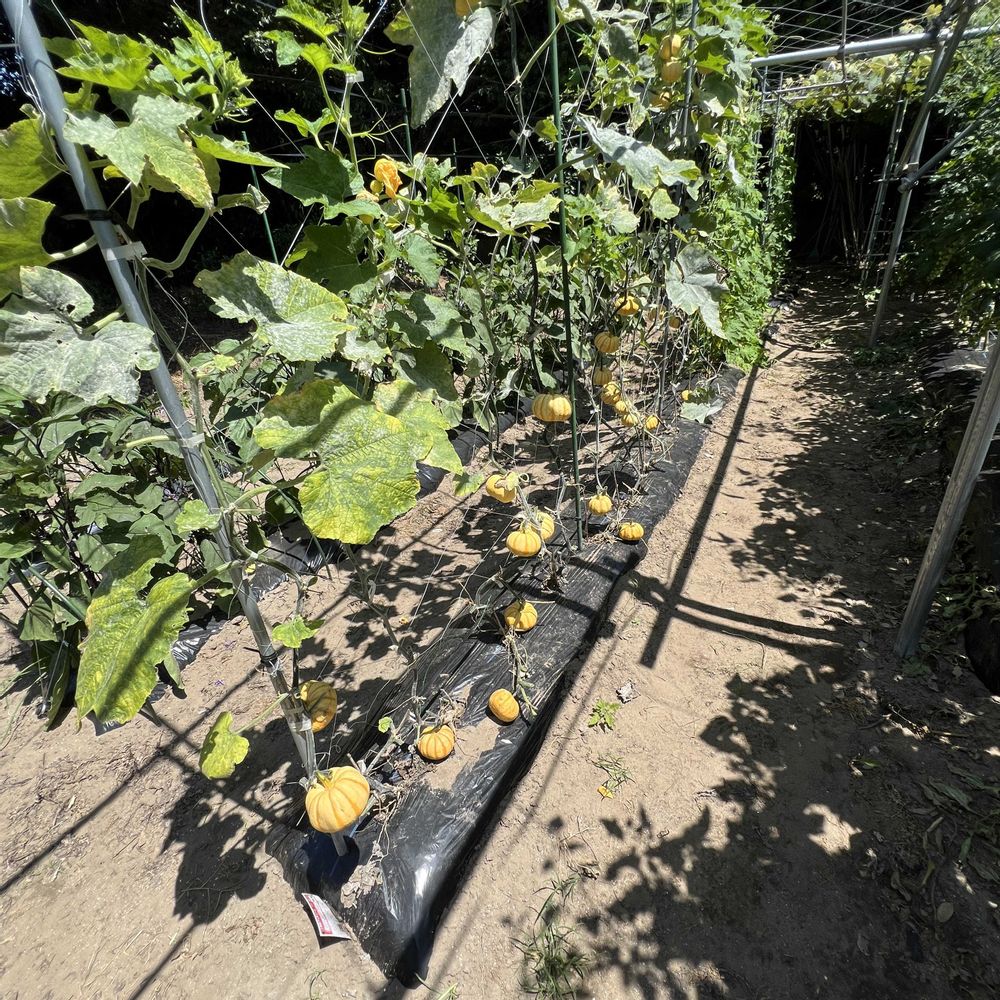 畑の立体栽培のミニカボチャでプッチィーニです。