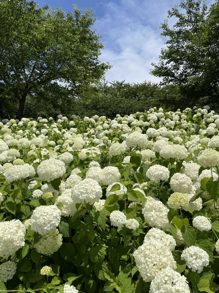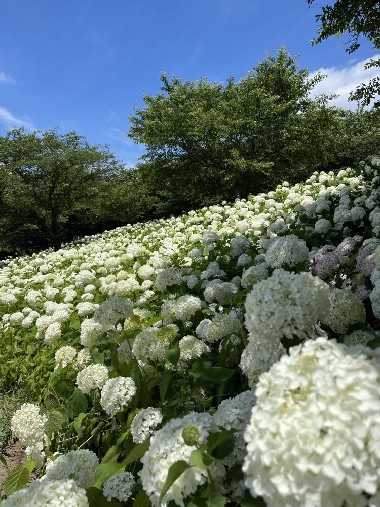 帰り間際に、ちょうど雲が晴れて来て、青空とアナベルが撮れました😊