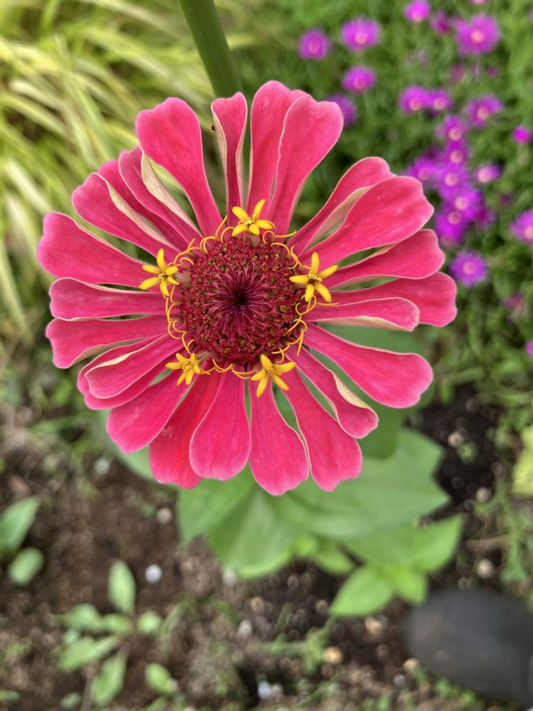 百日草は外側🩷も中側💛もどちらもお花らしいです。