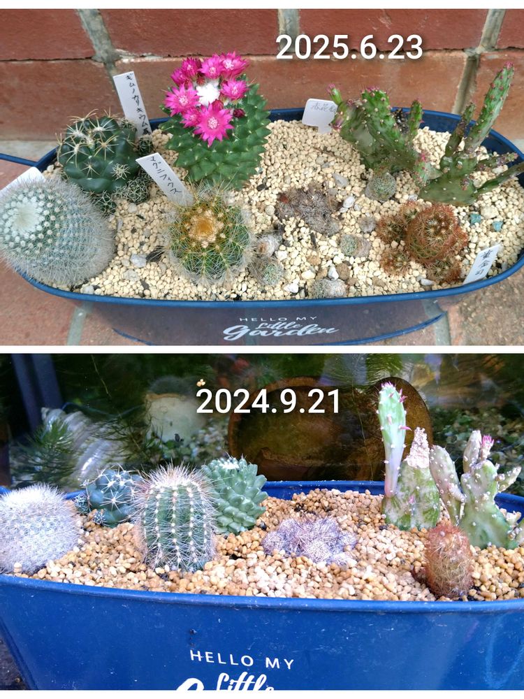 去年9月に一鉢にまとめたサボテンさんにお花が咲きました。💕