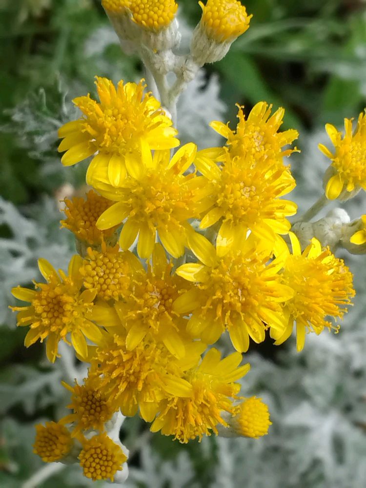 🌼地植えのシロタエギク、ここまで開いたのは初めてかも…