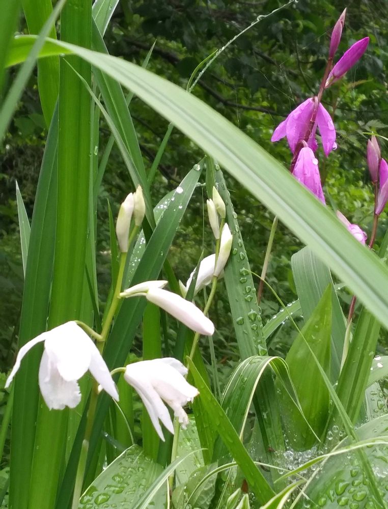 ①裏庭で白と紫の紫蘭がひっそりと咲いてました✨