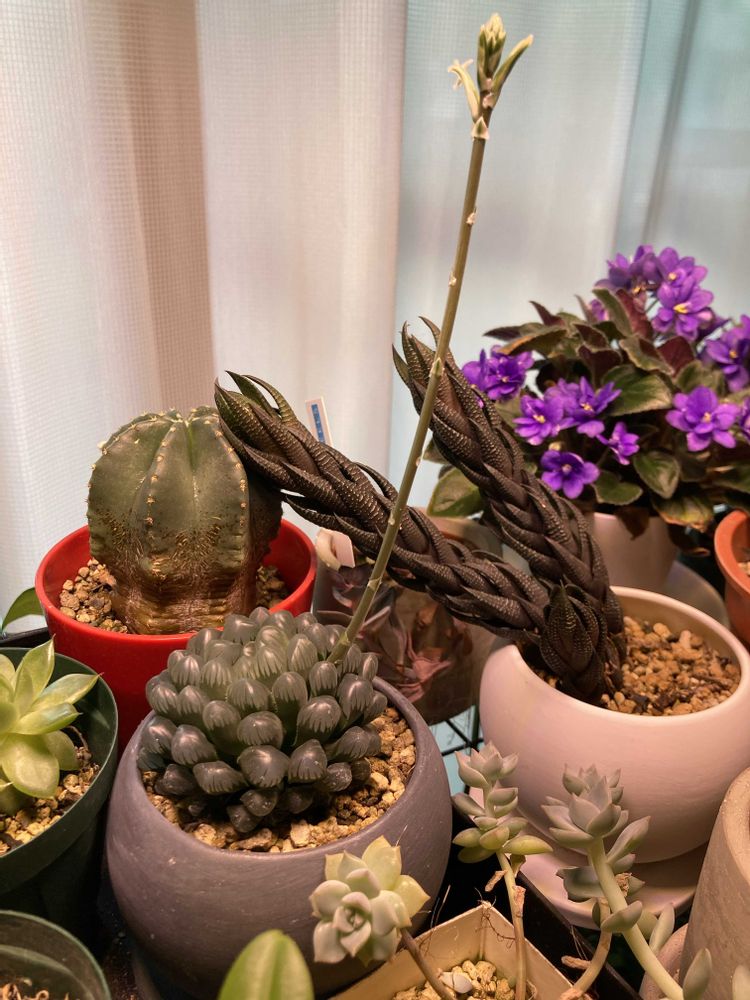 ハオルチアオブツーサの花芽がグーンと伸びてます。