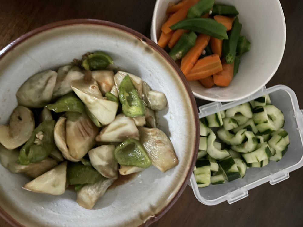 ボイルしたオクラとニンジンに麺つゆ❣️