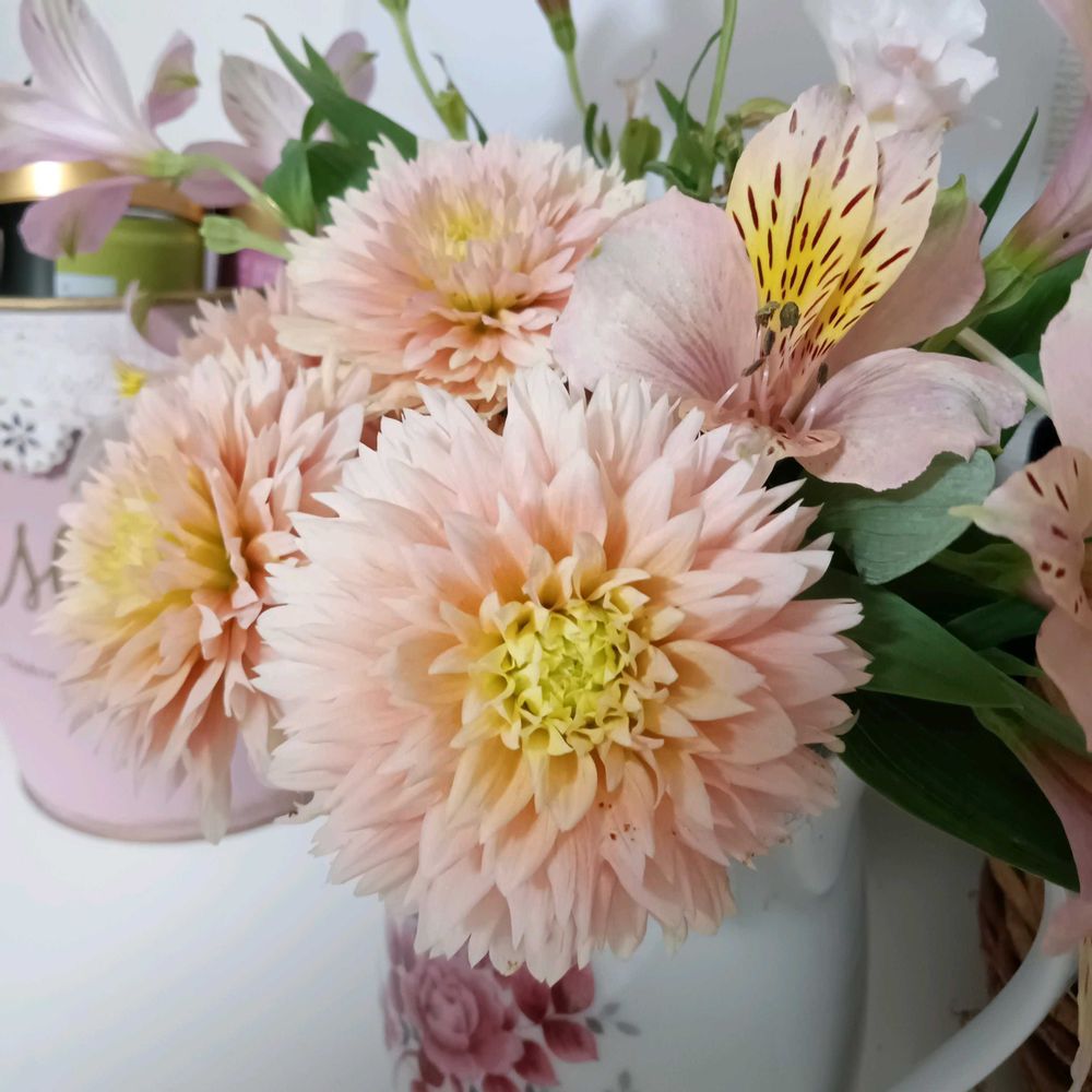 1️⃣ダリアとアルストロメリア雨の前に✂️して飾りました。