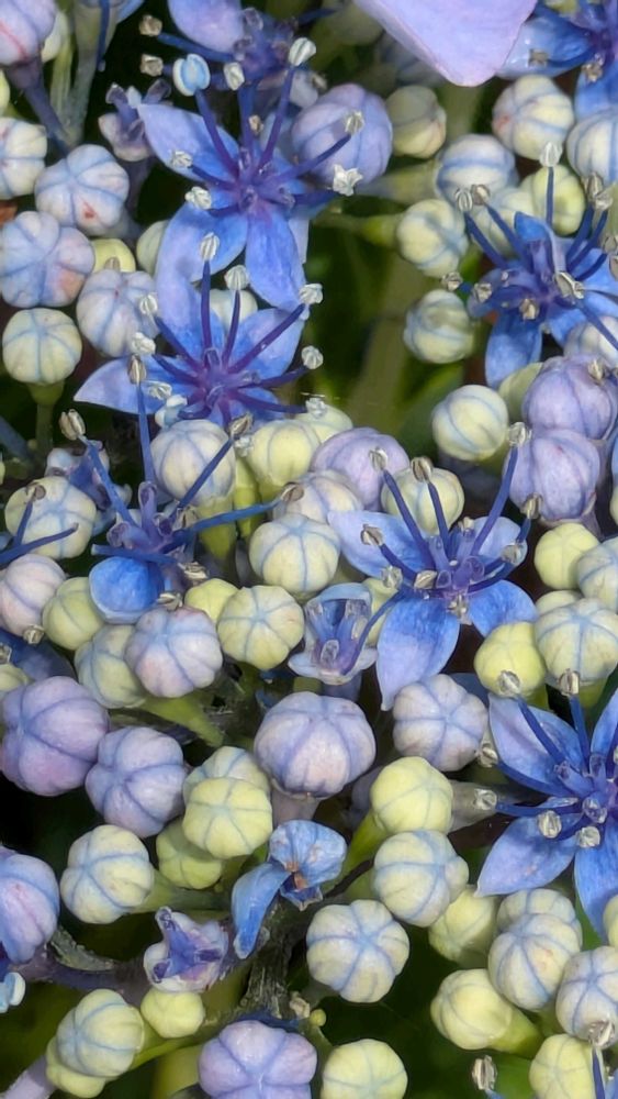 大きくまん丸になる紫陽花が好きだったけど、よく見るとこの子も可愛い🩵🟡🟡🟡🩵💕