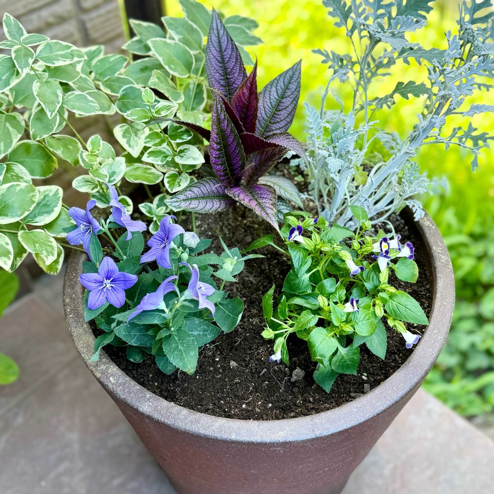 寄せ植えの 🌿ストロビランテス ディエリアナさん渋〰ぃ インパクト有りますネ 👏❤(ӦvӦ。)💕