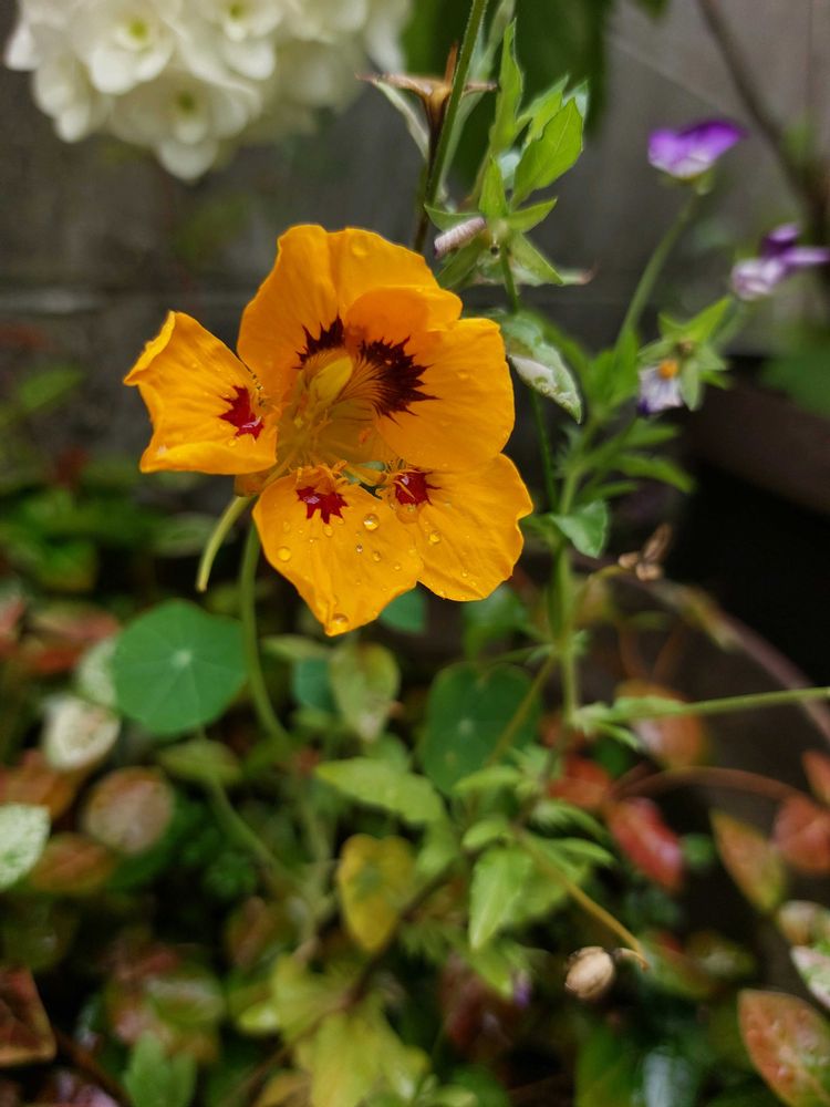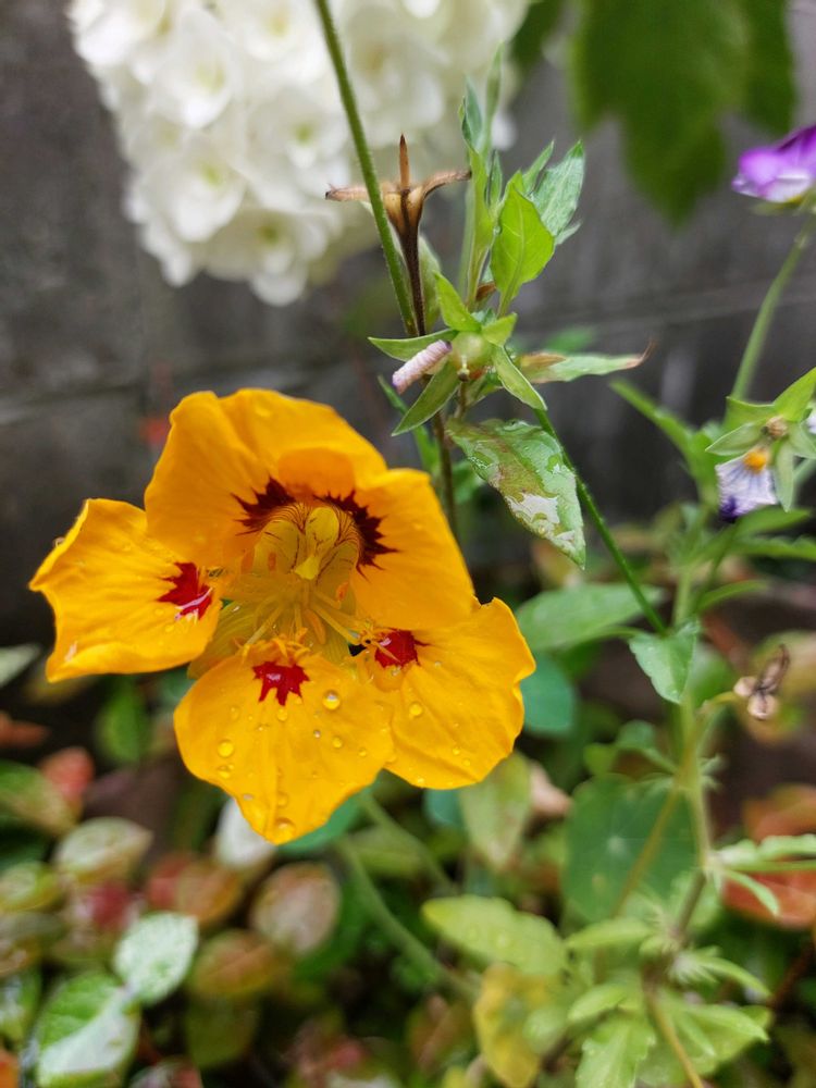 雨の恵みでしょうか、枯らしてしまったと思っていた種まきのナスタチウムがひっそりと咲いていました。