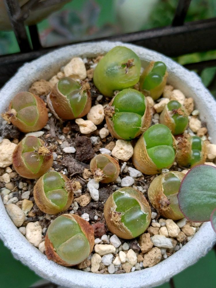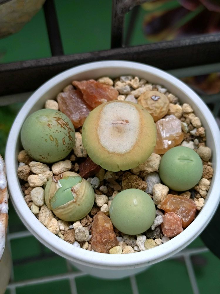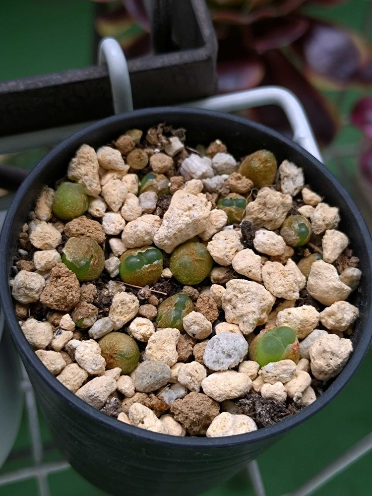 翡翠玉一つ脱皮が始まりました!翡翠玉右上のがまたシワシワ😵根が成長不足かも😭